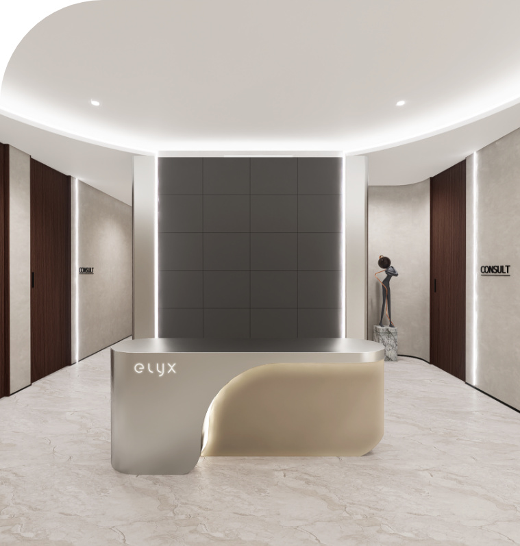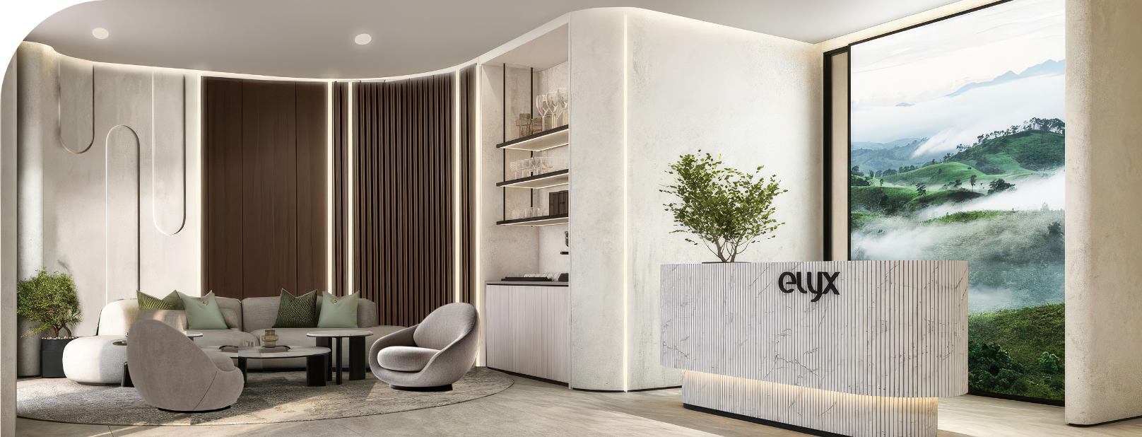 Elyx’s design balances precision with warmth. Curved forms, filtered light, and tactile materials create calm, while subtle metallic accents and digital elements introduce confidence and clarity. Every detail reflects the same philosophy that guides our stewardship, intelligent, intentional, and empowering.